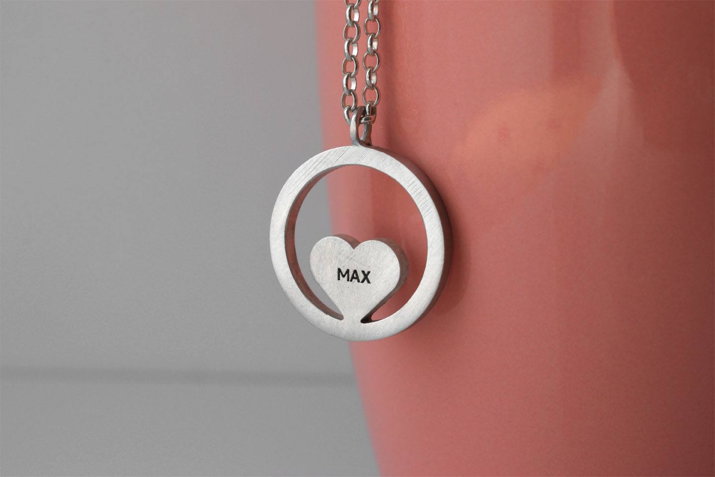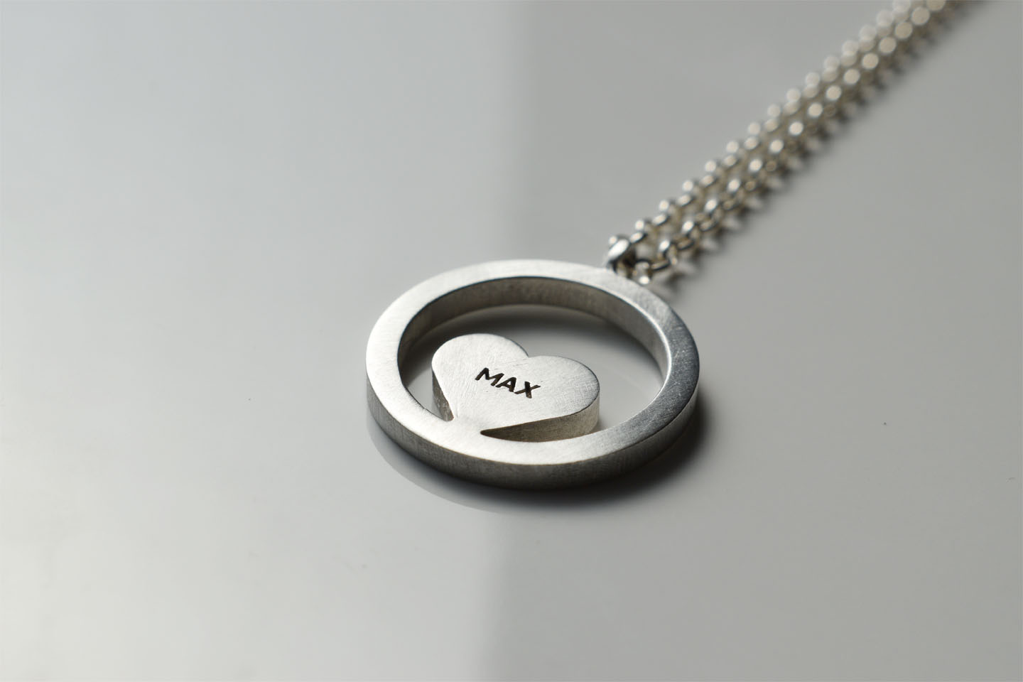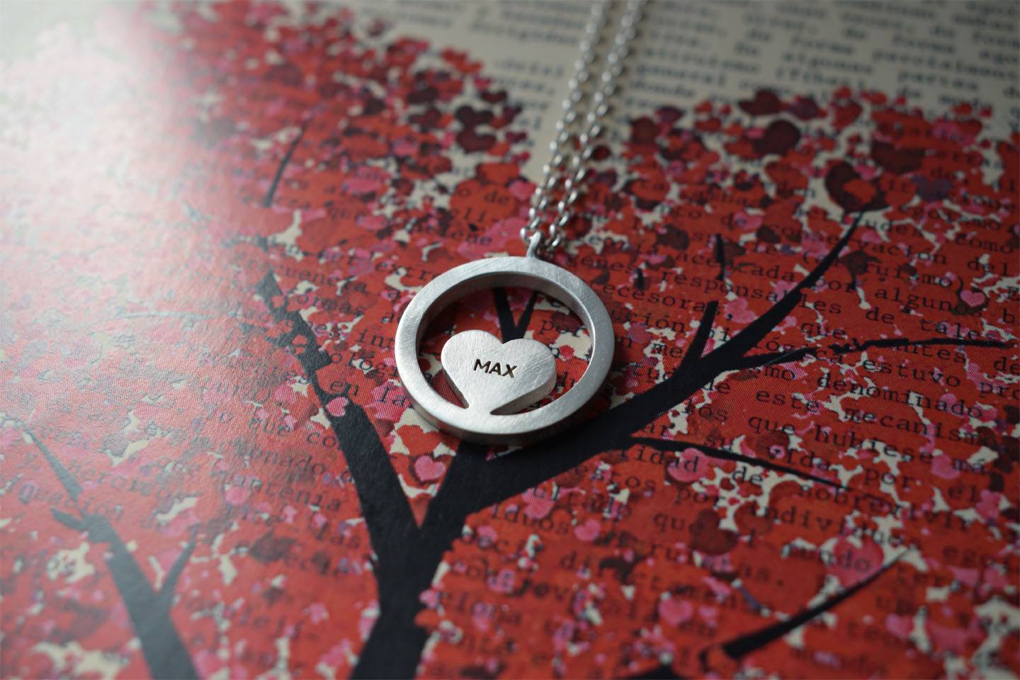 Colgante de plata personalizado en forma de corazón como expresión de amor y cariño.